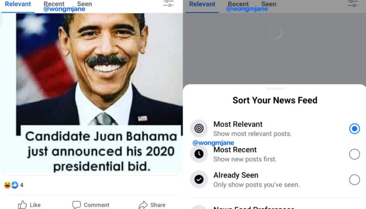 وشاركت وونج مع موقع (تك كرنش) TechCrunch التقني لقطات شاشة للميزة الجديدة التي تُقسِّم تطبيق فيسبوك إلى ثلاثة تبويبات منفصلة لصفحة (آخر الأخبار)، حيث يعرض التبويب الأول: (ذي صلة) Relevant المنشورات التي قد يهتم بها المستخدم، في حين يعرض التبويب الآخر (الأحدث) Recent آخر المنشورات، أما التبويب الأخير (شُوهِد) Seen فهو يعرض المنشورات التي شُوهِدت.