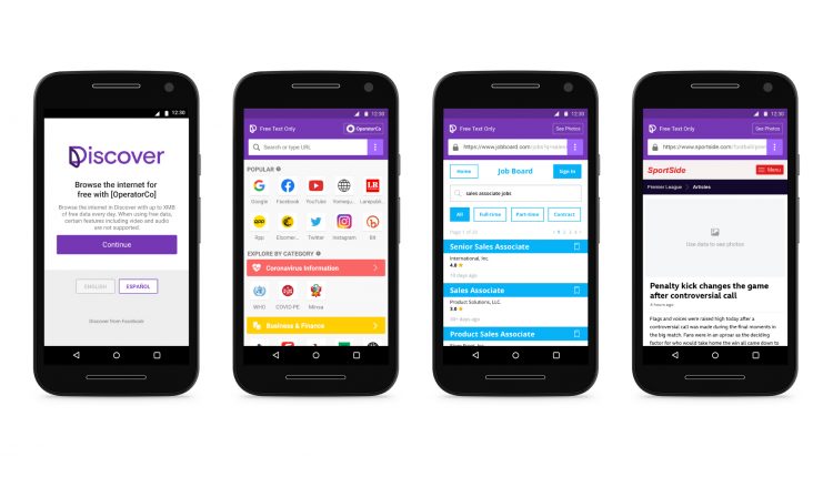 تختبر فيسبوك تطبيقاً جديداً يسمى (Discover) في محاولة منها للترويج لبرنامج (Free Basics) الطموح لجلب الأشخاص إلى الإنترنت لأول مرة، بحيث يسمح هذا التطبيق للمستخدمين بتصفح أي موقع إلكتروني باستخدام رصيد يومي من البيانات المجانية المحدودة المقدمة من مشغلي شبكات الهاتف المحمول.