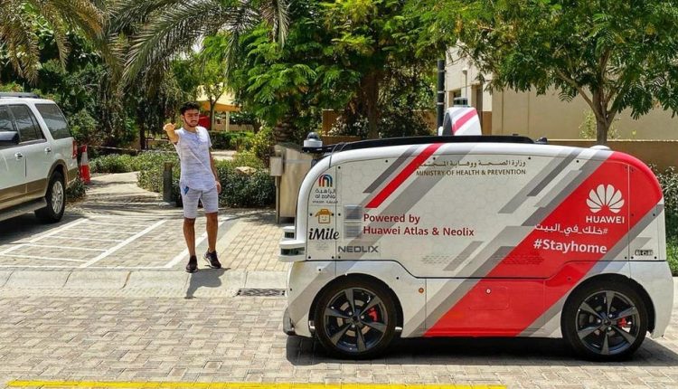 خصصت وزارة الصحة في الإمارات سيارة ذكية ذاتية القيادة لتوزيع المنتجات الطبية الوقائية، مثل الكمامات والمطهرات والقفازات على سكان مجمع سكني بالشارقة والعمال المتواجدين في المجمع، وذلك بالتعاون مع مركز تعزيز صحة الأسرة بالشارقة وشركة “هواوي” للإلكترونيات.