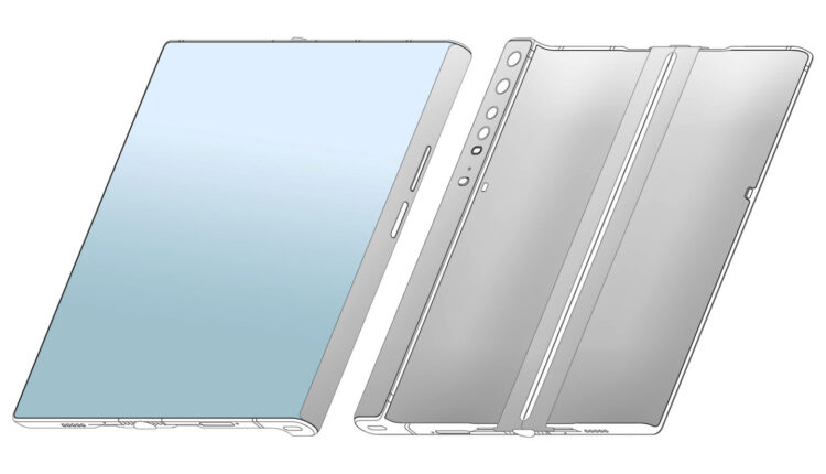 وتُظهر رسومات براءات الاختراع التي تم تحسينها قليلاً بواسطة LetsGoDigital جهازاً مزوداً بشاشة قابلة للطي إلى الخارج ، ويضم شريطاً حيث من المفترض أن يتم تعليق الهاتف. ليس هذا فقط المكوّن الأكثر سمكاً للهاتف الذكي، ولكن هذا الشريط يحتوي أيضاً على الكاميرات الأربع للجهاز. لا توجد كاميرا سيلفي مخصصة، لذلك سيتم استخدام هذه الكاميرات في المقربة أيضاً.