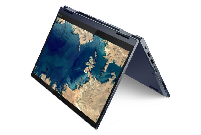 ربما يكون C13 Yoga هو جهاز Chromebook الأفضل مظهرًا للمؤسسات حتى الآن، بهيكل من الألومنيوم “Abyss Blue” وتصميم هادف، ويحتوي على مواصفات معقولة، بما في ذلك معالج AMD Ryzen 7 3700C وشاشة مقاس 13.3 بوصة بدقة 1080 بكسل مع حواف ضيقة والعديد من المنافذ وإمكانية WiFi 6، كما أنها خفيفة نسبيًا بالنسبة لسيارة قابلة للتحويل يبلغ وزنها 3.3 أرطال، ويبلغ سمكها 15.5 ملم فقط.